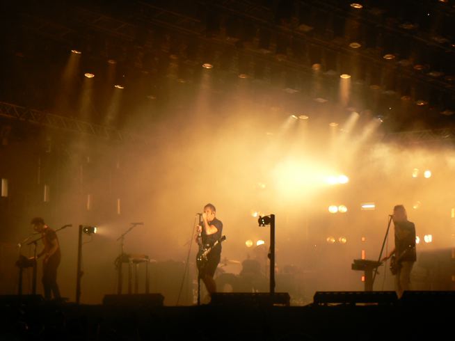 Dei Tv On The Radio avevo letto bene, ma non mi aspettavo una performace così energica! E’ stato proprio un bel concerto, durato poco, ma veramente bello, trasmettevano una carica palpabile. Anche tecnicamente li ho trovati molto validi, per quanto ne capisca io. Ma forse si rendono conto che tutti sono lì per i NIN e sono quindi impazienti… ed è forse con un po’ di ironia che il cantante annuncia i NIN prima di uscire dal palco…