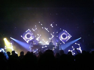 Nota particolare, la scenografia tanto semplice quanto efficace del live: tre schermi romboidali appesi in corrispondenza di tre piramidi sul palco su cui venivano proiettati immagini e luci a ritmo con la musica creando ancor più travolgimento da parte del pubblico. Piena dimostrazione di questo perfetto connubio tra musica e scenografia si ha con il brano conclusivo dell’intero concerto (nonchè ultimo brano di “Wonky”), “Where Is It Going?” il cui perfetto gioco di fari e fasci luminosi ha fatto scatenare il pubblico torinese in un ballo forsennato e travolgente che ha concluso nel migliore dei modi una serata già iniziata perfettamente.
